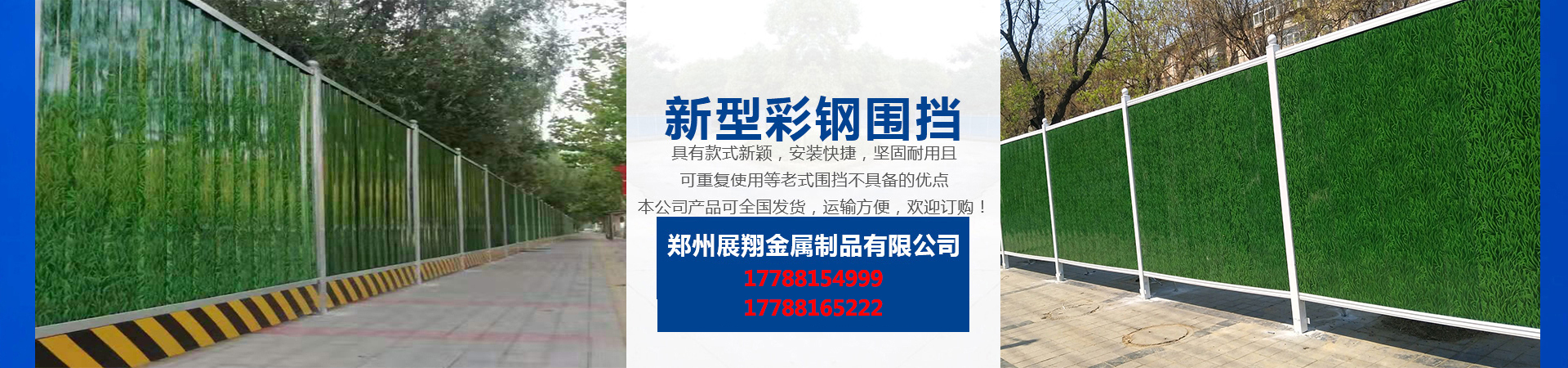 鄭州展翔金屬制品有限公司成立于2018年,公司專業(yè)從事市政設施的研發(fā)和生產(chǎn),經(jīng)過多年的積累和培養(yǎng),公司擁有一批經(jīng)驗豐富的技術(shù)人才,公司主要生產(chǎn)新型市政圍擋、施工圍擋、彩鋼圍擋、工程圍擋、地鐵圍擋、PVC圍擋、及交通設施系列金屬產(chǎn)品,公司旗下的新型彩鋼圍擋、具有安裝方便,運輸方便,拆裝方便,堅固耐用,款式新穎,美觀大方、二次使用率高、無污染等優(yōu)點產(chǎn)品暢銷全國